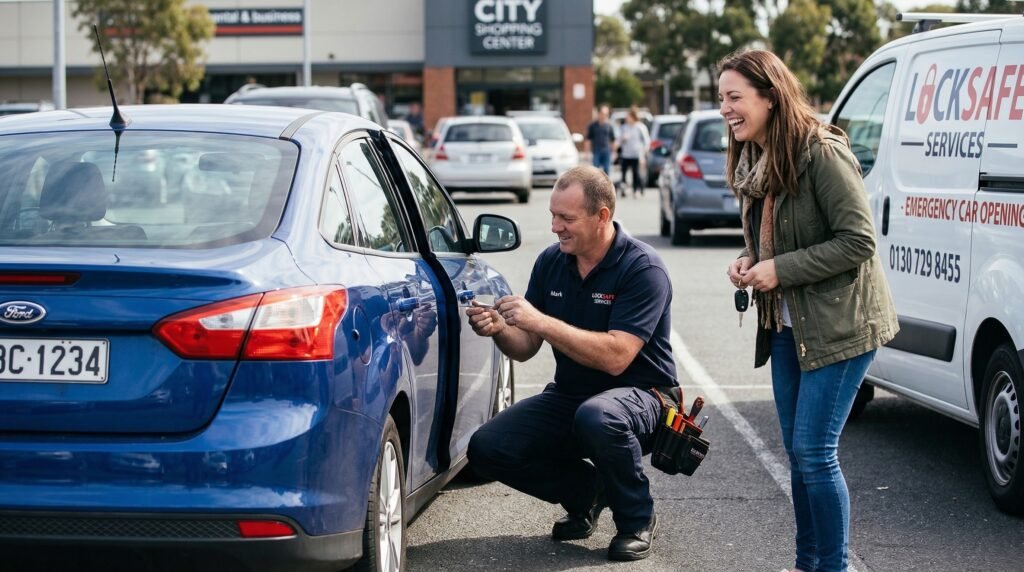 A mobile locksmith can reach your location in about 30 minutes and open your car without damage. We carry tools designed specifically for non-destructive vehicle entry.